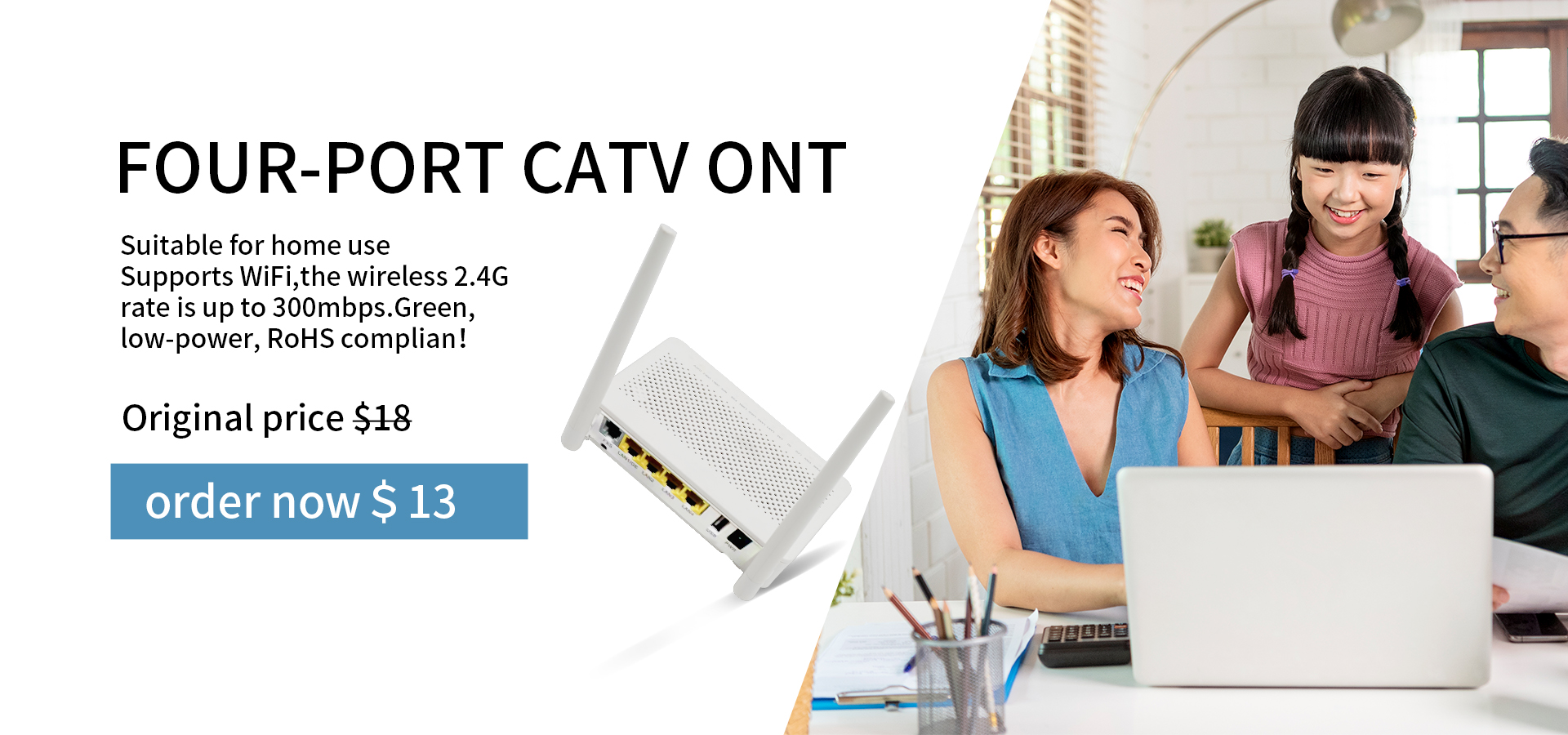 CATV ONUs include an RF coaxial port to connect a TV or set-top box to receive video services. Voice ONUs have POTS or VoIP ports to provision telephone service. WiFi models allow connecting your wireless devices to the internal access point.
