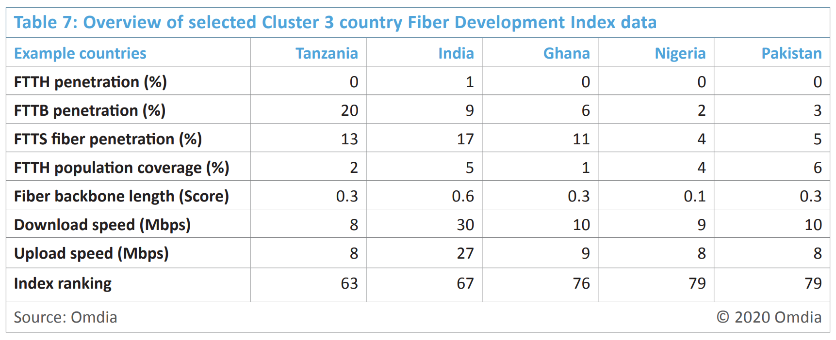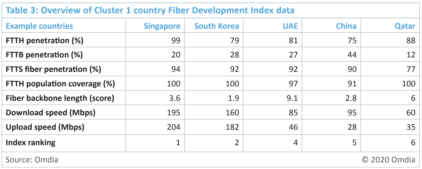Optical Fiber Network Development Index (FDI) 2020 ranking